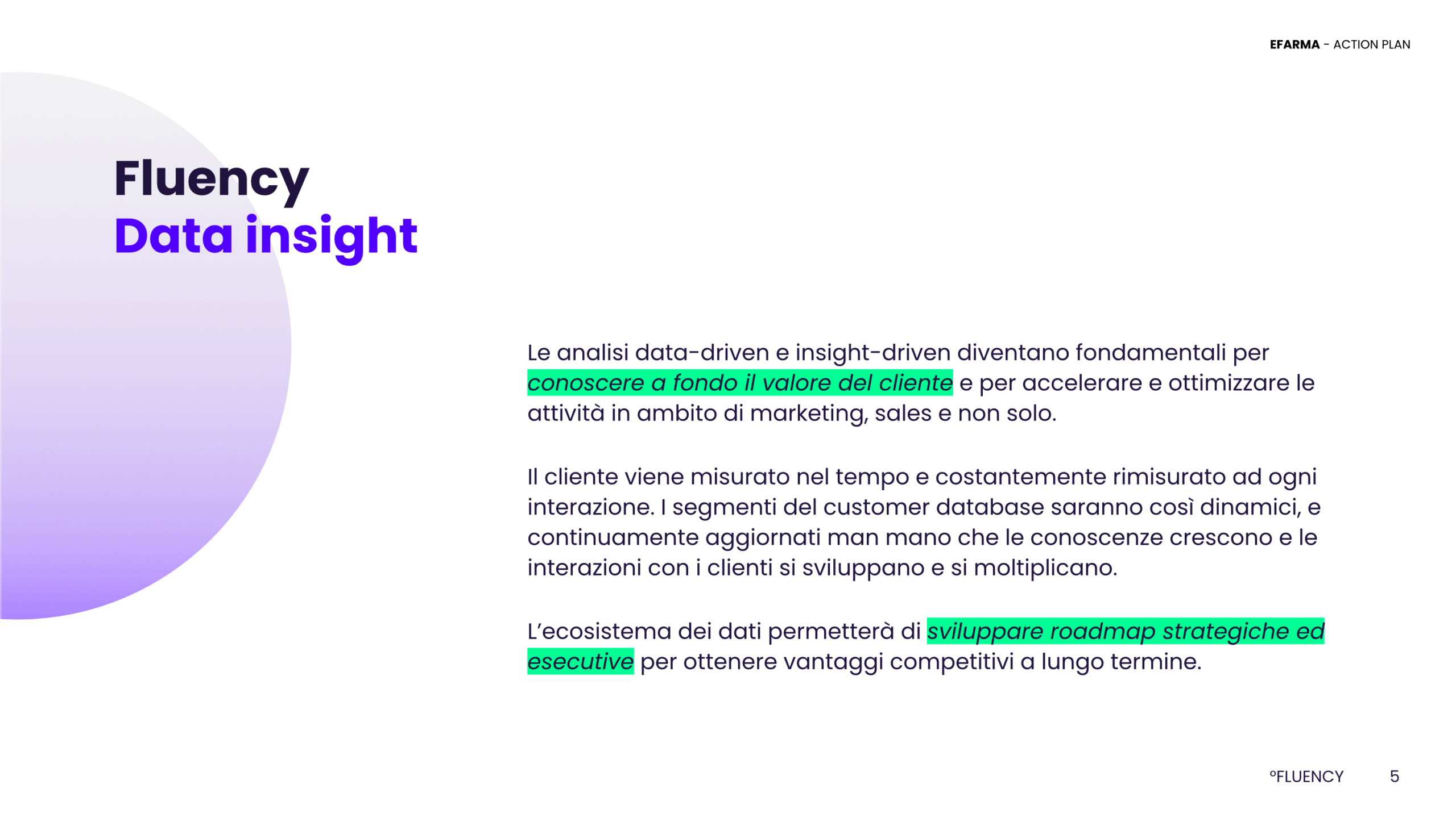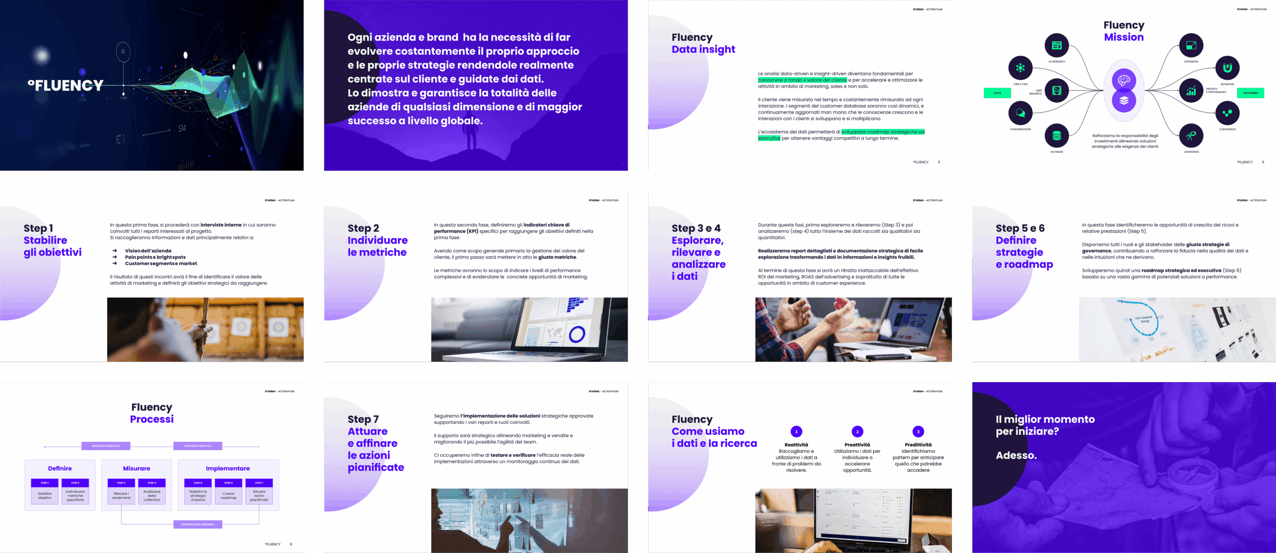 The result was a clear, story-led company presentation that positions Fluency as both analytical and human-centered – a trusted partner capable of transforming complexity into clarity.